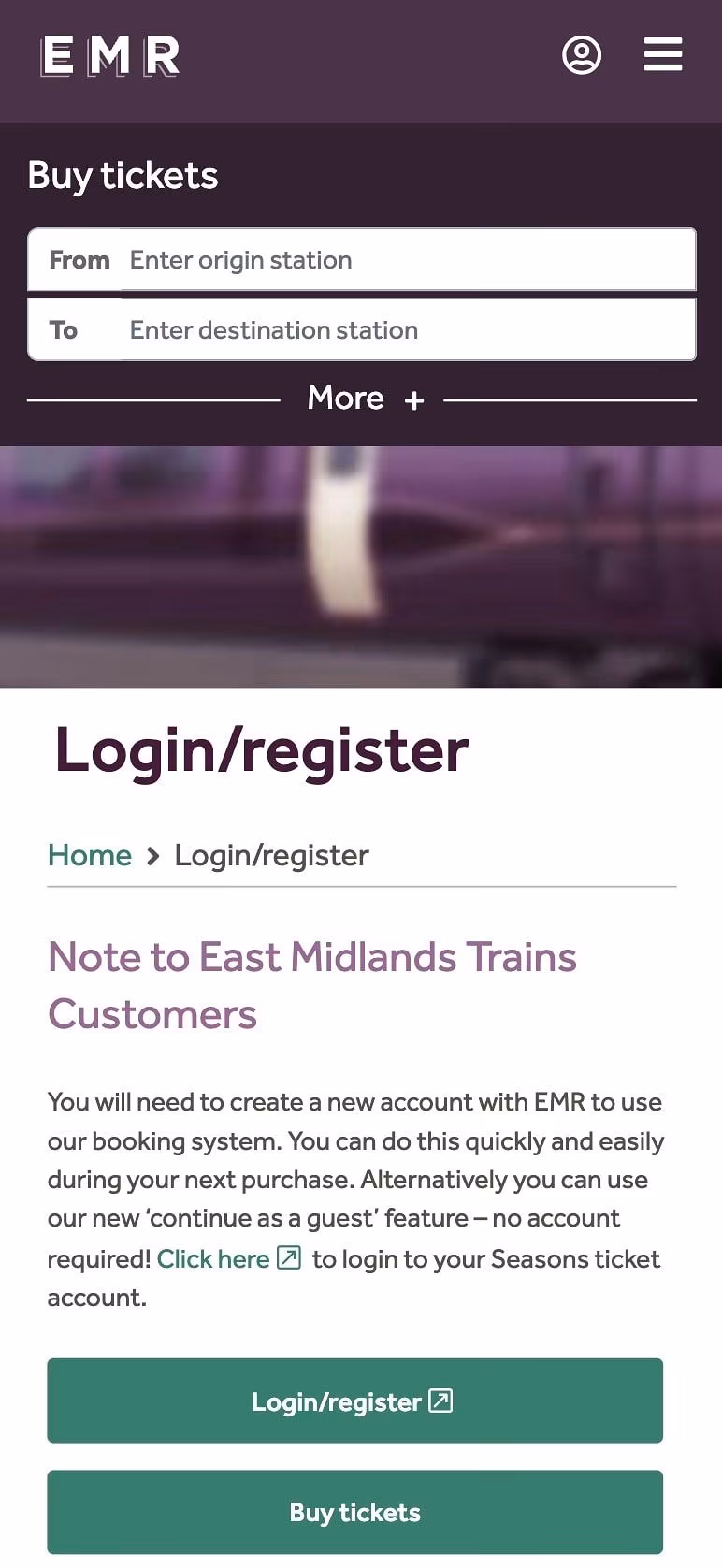 In an example from East Midlands Railway, it would be perfectly fine to include the “Buy tickets” button as a secondary CTA. It should be a visually distinct option that’s clearly lower-priority but still there for people to use.