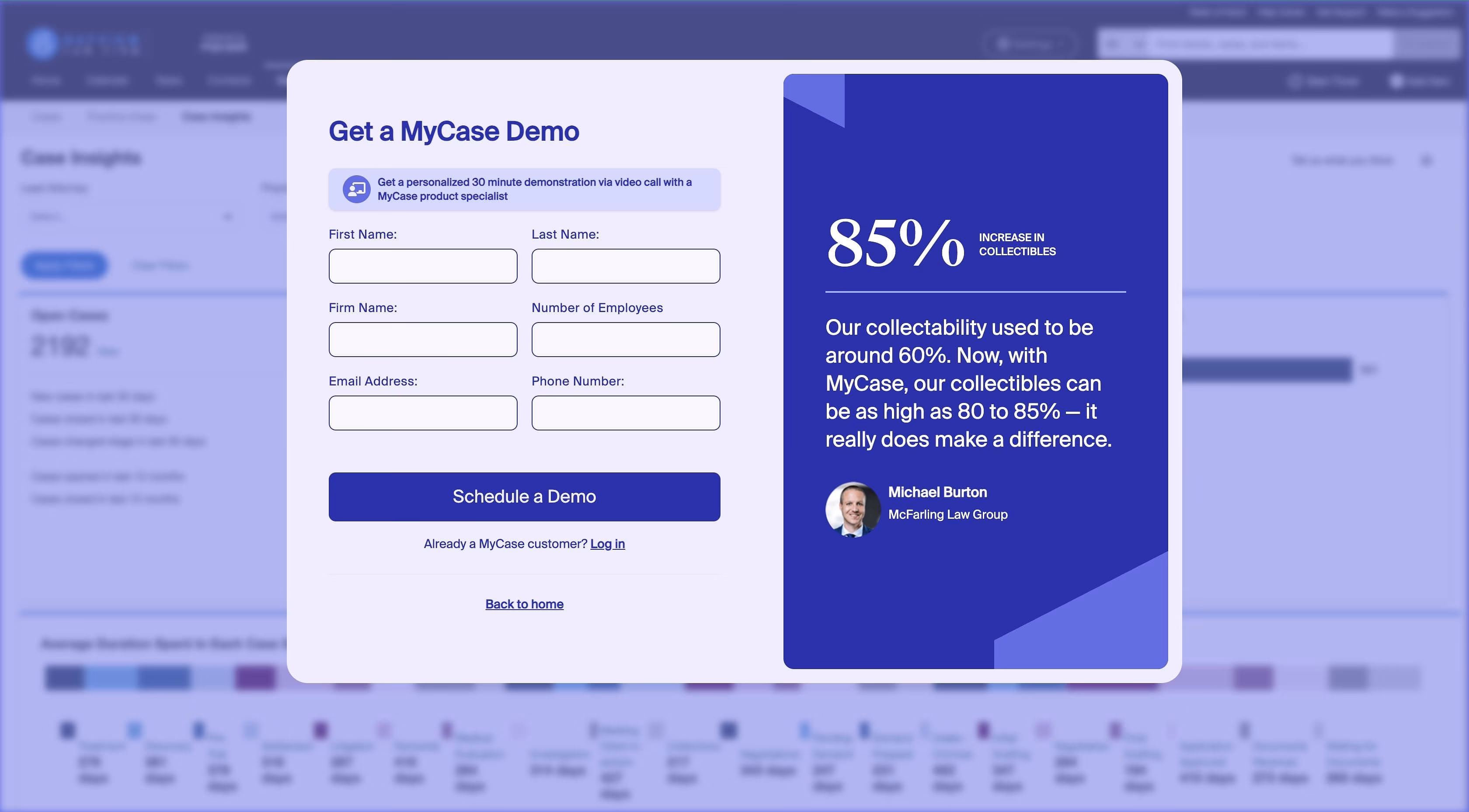 Note: this is different for pages like “book a demo”, as the target audience and intent shifts. As an example, MyCase uses our first suggestion but also includes social proof on their “Schedule a demo” page: