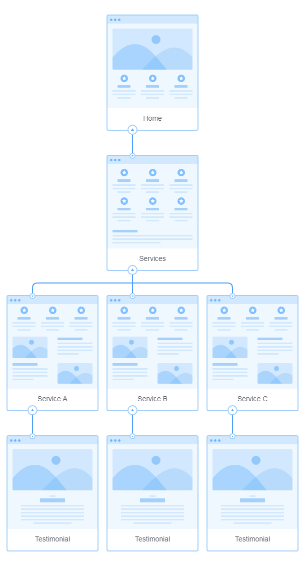 Below you’ll see a template of a sitemap. We’ll use it to describe what page authority could look like on this simple website.