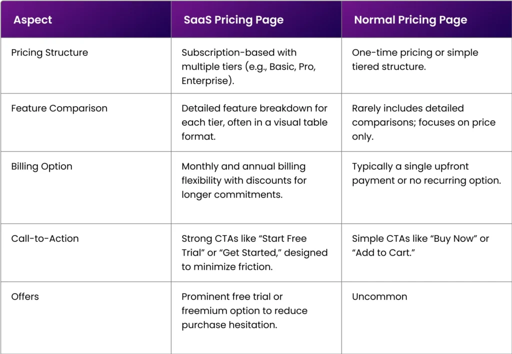 A pricing page for B2B SaaS should include: clear plan differentiation (who is each plan for, not just what’s included), a pricing model that makes sense for your market (per seat, per usage, flat rate), FAQs that address common objections, testimonials from customers at different tiers, and an easy path to talk to a human for custom needs.