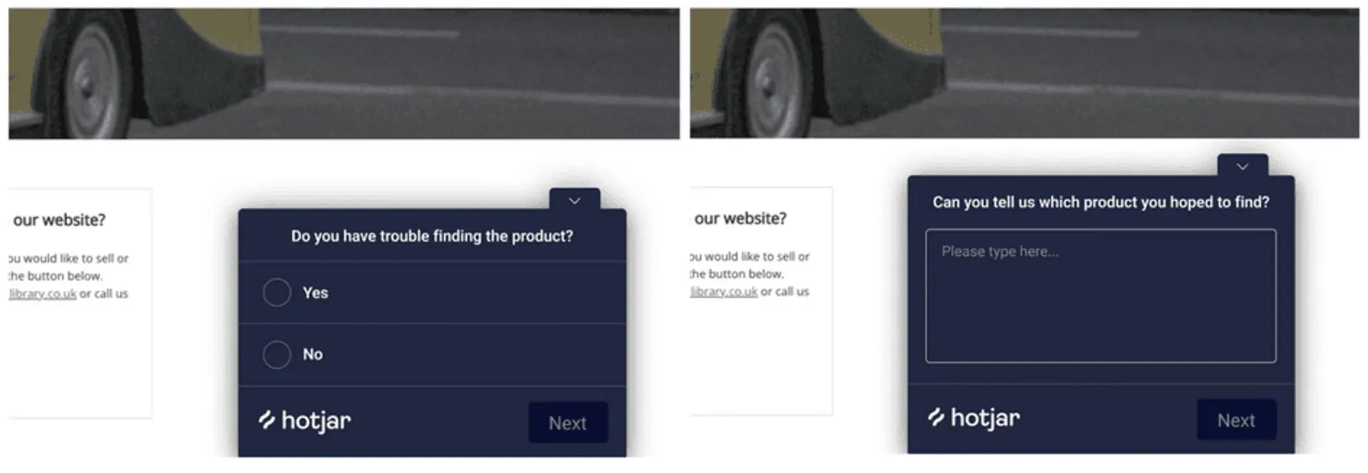 Placing them strategically, with very specific questions is a much better approach than just slapping a “Feedback” button on every page. You can learn more about how we do it in the NerdCow case study that Hotjar featured on their website. Here’s an example from that case study: